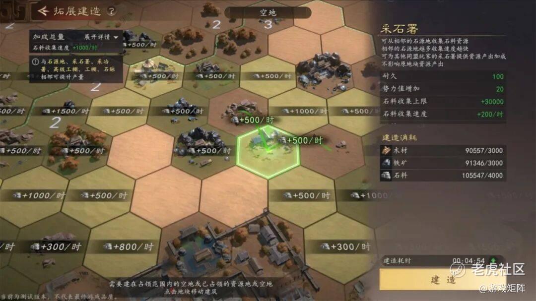 有意思的一点是,游戏在城建方面做了一点差异化设计。那就是玩家在城外摆放资源建筑可以吃相邻加成。这要求玩家对城外建筑做一定的规划,主要影响的还是开荒初期,规划完成后也不需要玩家再频繁操作。
