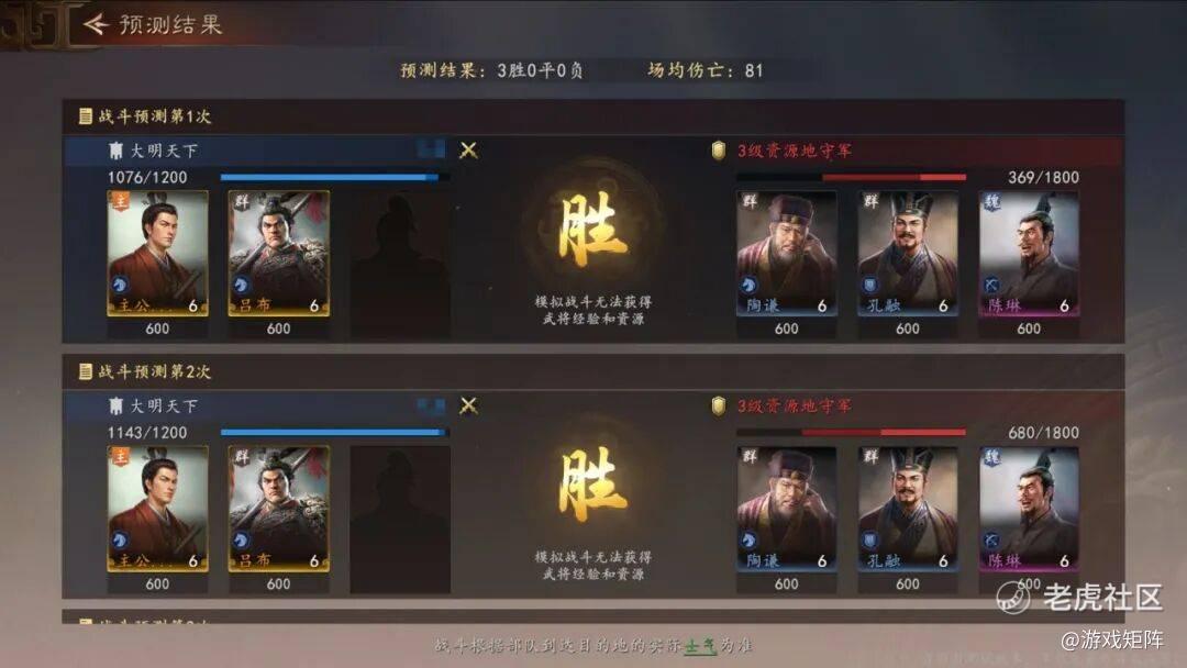 当然,《三王》并没有为了这套战斗系统而增加玩家的负担。战斗依然是自动进行的,无需玩家手动操作。玩家也可以通过系统推荐一键配队只看战报。游戏甚至还提供预测战斗结果的功能,减少玩家开地损失。这些都是游戏给玩家提供便利。