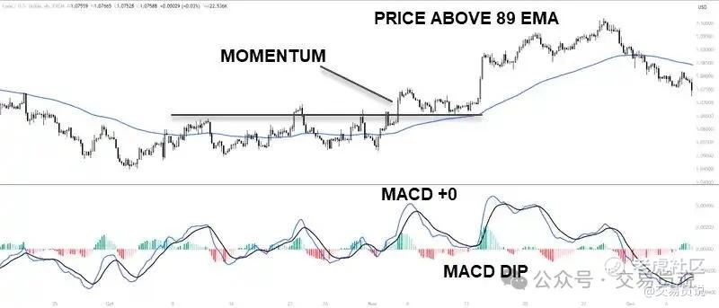 此外,在MACD回调过程中,我不希望看到价格动能明显逆势增强。这是一个顺势延续交易,如果在回调期间出现强烈的反向动能,往往是一个需要警惕的信号。