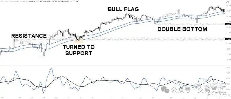 进一步提高复杂性——观察图表形态。价格会形成特定的形态,例如“双顶”“头肩顶/底”或“旗形”。识别这些形态可以对市场方向提供有力确认,从而增强交易策略的可靠性。