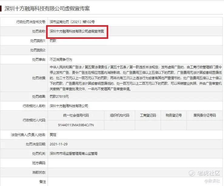 2021年12月,深圳市市场监督管理局南山监管局便认定十方融海存在发布虚假广告的不正当竞争行为,依据《广告法》对其作出罚款27819元的行政处罚,彼时违规问题便出在核心平台荔枝微课的宣传端。