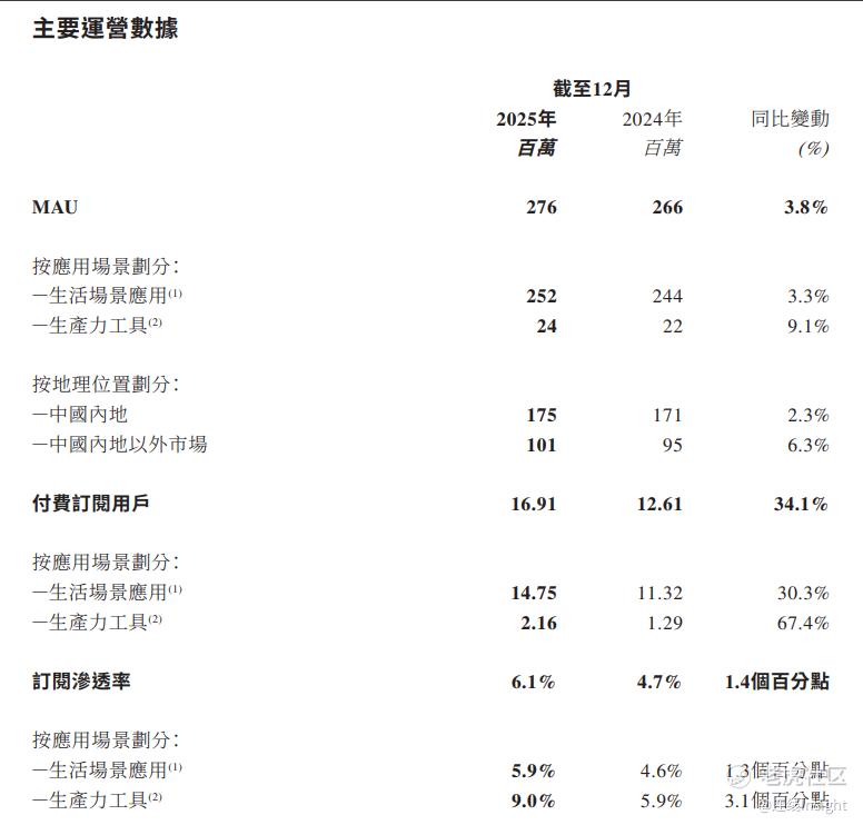 2025年全年,公司的影像与设计产品收入占总收入的比重,从2024年的62.4%大幅攀升至76.6%,相比另一项广告业务的收入占比,从2024年的25.2%下滑至21.8%。