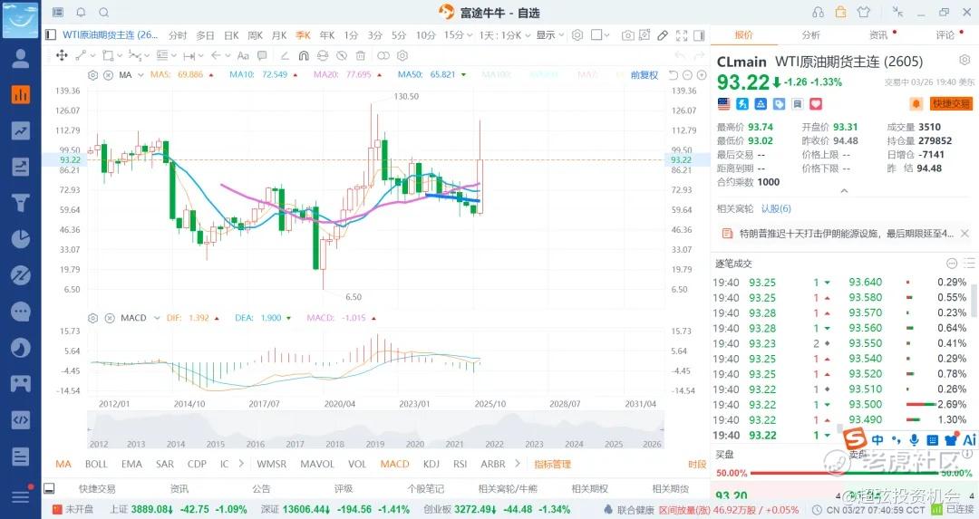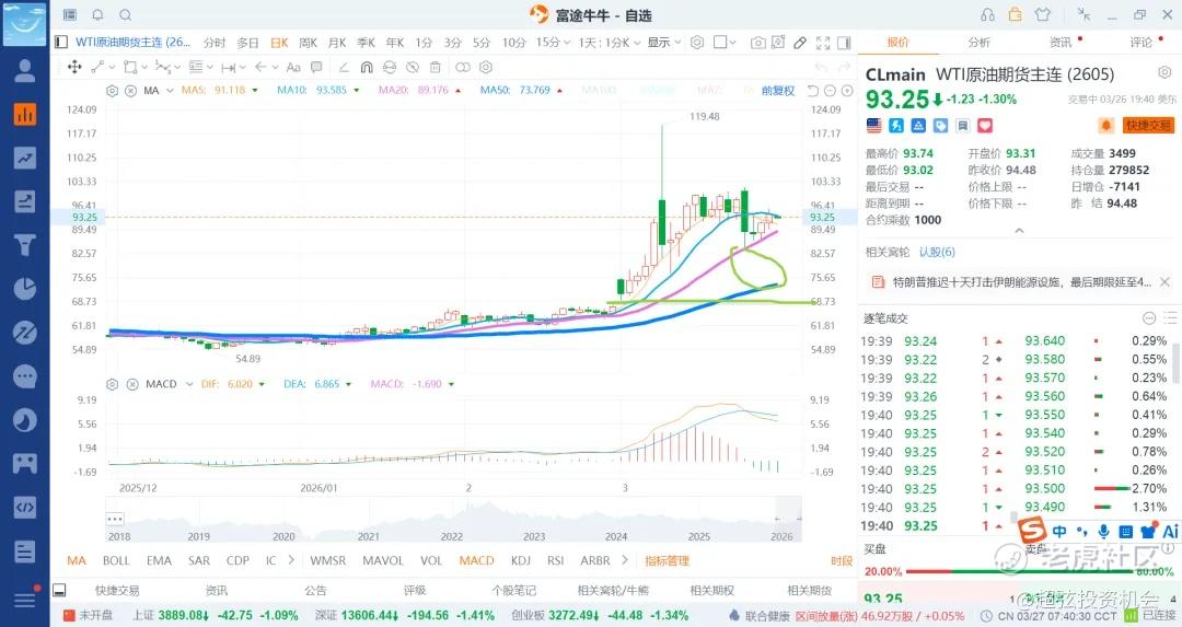 现在是原油走高,金毛就出来说话,就打压一下,但效果没有之前的好了,跌幅是越来越小了,那么自然是走跌的时候就是低吸的时候了,最次在85附近吧,间隔个5美金就差不多了,后续跌也就是65/75附近,在跌一时半会也下不去,何况谈判没有那么快的时间结束了,就算结束了还有不少扯皮的地方,叠加中东不少石油设施被毁坏了,原油的中枢提高到七十多美金了,那么大跌走低了不少就是给你送钱了,最差的就是低位做空,其次是高位追多,而是的利用ai量化大模型的大幅度砸下来去低吸做多,这样赚一个空间的反弹还是不错的了,就看ai量化给不给机会了,这个算是最确定和稳定性的玩法了,就是做这样能预料后果的走势,而不是看到市场肉很多,但你吃不到嘴里有什么用呢。