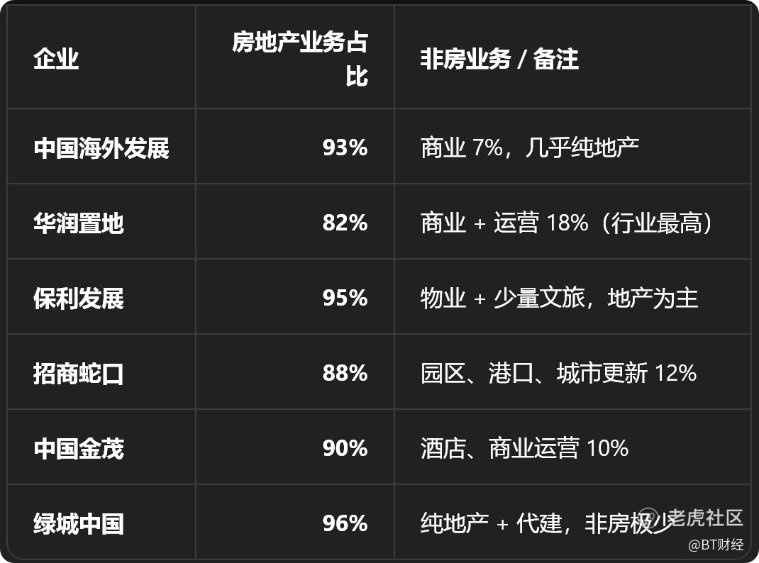 2025年,央国企仍以重资产开发为主,占比普遍85%以上,保利发展的房地产业务占比90%,绿城中国约96%,中海地产占比93.3%,华润置地占比82%,招商蛇口占88%,而房地产业务占比过高,是优势,也是风险。