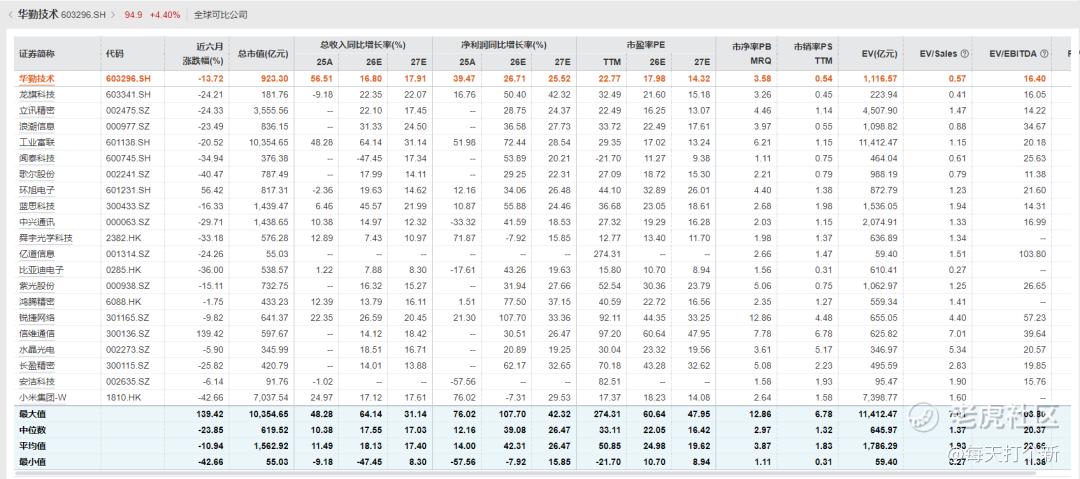 其中,闻泰有半导体业务拉高了毛利率,相比之下,公司利润率不及立讯精密,略高于龙旗科技。立讯与华勤营收体量差不多(龙旗体量较小),PE相近(22倍左右),但华勤的PS却仅有立讯的一半左右。