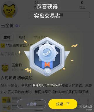 因为孩子的这个示范交易,我居然还获得了实盘交易者这个奖章,呵呵。