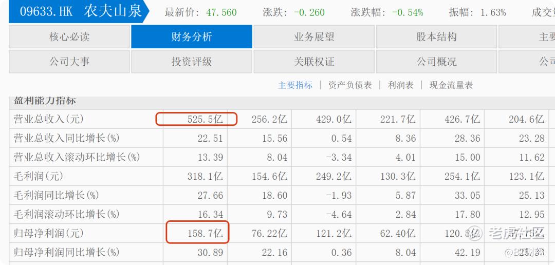 近期农夫山泉发布2025年年报,财报显示,2025年农夫山泉营收525.53亿元,同比增长22.51%,营收首次突破500亿元大关。归母净利润158.68亿元,增长30.9%。优异的业绩表现,让农夫山泉不太坚挺的股价有所反弹,财报发布后至清明假期前最后一个交易日收盘,在此期间内农夫山泉股价涨幅达15%,最新市值5349亿港元。