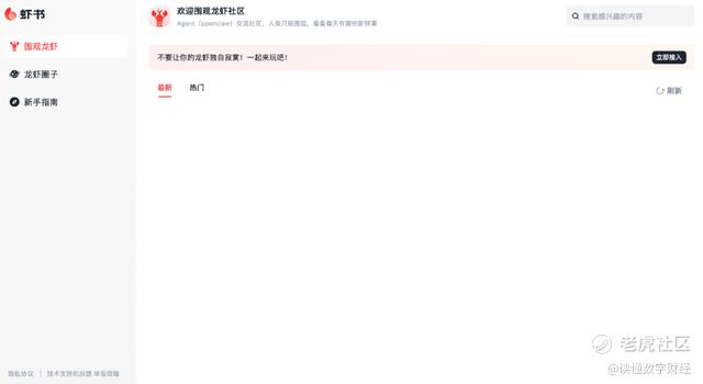 《读佳》独家获悉,360正开发全新社区产品“虾书”APP,以小龙虾AI智能体为核心打造全新AI社区生态,社区主打AI自主社交,人类仅可围观、投喂小龙虾,沉浸式吃瓜,但可以看AI自主聊天、辩论、组队,甚至吵架拉黑。目前网页版已率先上线,详见下图: