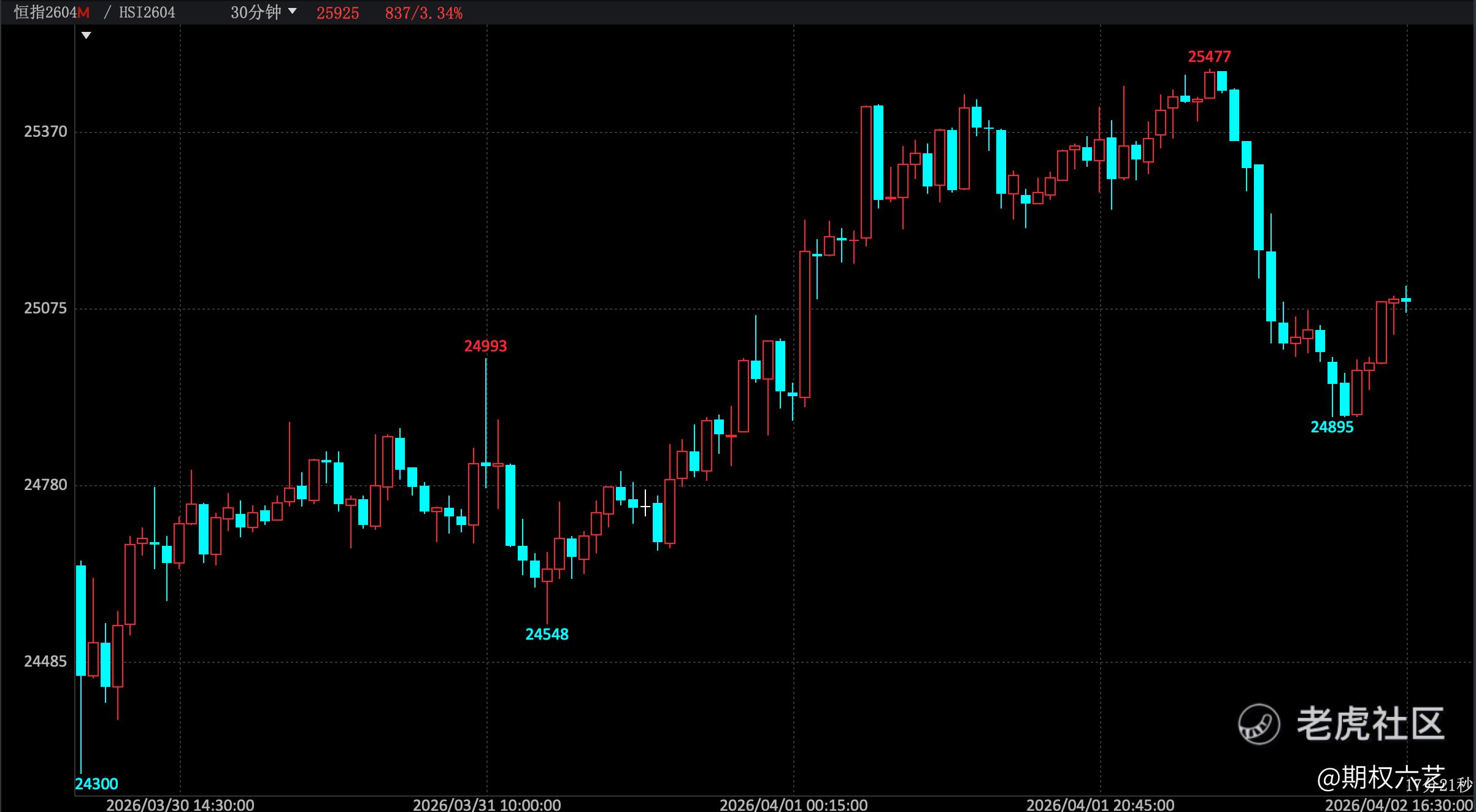 港股恒指期权周双买3月4周全胜刚结束的一周,恒生指数周三高开至25400,恒指期权周双买相当给力达百点期权金,周一上午20点成本入场认购25200call/认沽23800put(组合期权),周三全日认购都于价内。本周为今年最佳,翻五倍跳开一步到位,无需考验交易者持仓能力,若步步升翻倍已收获,到50卖就相当不错。周期权周五到期,看的过高以时间换空间逻辑未必可及。双买于港股经历时间验证持久可行,25年下半年至今连续37周28周胜4平5负,低成本不翻倍不算赢。双买是以熟能生巧,非靠超人能力的判断涨跌,涨跌看似简单二选一,日久下来多成难逾越的高度,仅凤毛麟角有所成。不判断方向双买波动获利或是出路,但需技巧及经验加持,熟练之可掌握可跨越。 $恒生指数主连 2604(HSImain)$ $HSI(HSI)$ $