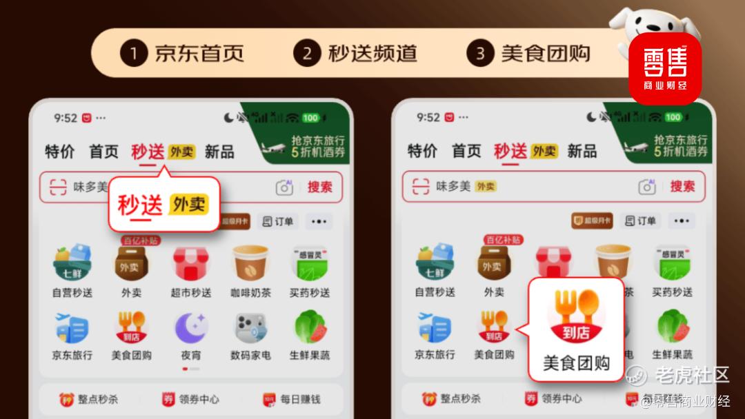 对京东而言,团购承担着“高频带低频”的核心作用,成为激活全生态流量的关键抓手。此前京东核心电商业务以中低频消费为主,用户打开APP的场景相对有限;而到店团购作为日常高频刚需,覆盖餐饮、休闲等每日消费场景,能够持续唤醒用户,提升APP日活与打开频次,进而带动主站电商、秒送等低频业务转化,实现流量价值最大化。