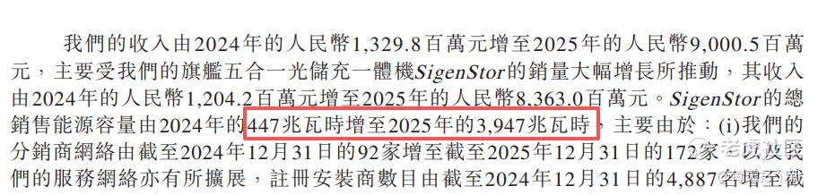 目前全球排名第一的分布式光储一体机供应商,其实你看弗若斯特沙利文2024年的数据,公司出货量475千瓦时,仅排第三。但是2025年业绩实在太牛逼了,支柱业务SigenStor出货量同比增长7.8倍。