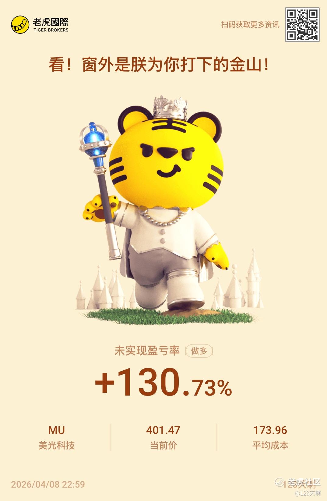 {"i18n":{"language":"zh_CN"},"data":{"magic":2,"id":551479544419056,"tweetId":"551479544419056","gmtCreate":1775660392582,"gmtModify":1775660404245,"author":{"id":4167975993056262,"idStr":"4167975993056262","authorId":4167975993056262,"authorIdStr":"4167975993056262","name":"123天啊","avatar":"https://community-static.tradeup.com/news/default-avatar.jpg","vip":1,"userType":1,"introduction":"","boolIsFan":false,"boolIsHead":false,"crmLevel":6,"crmLevelSwitch":0,"currentWearingBadge":{"badgeId":"228c86a078844d74991fff2b7ab2428d-3","templateUuid":"228c86a078844d74991fff2b7ab2428d","name":"投资合伙人虎","description":"证券账户累计交易金额达到100万美元","bigImgUrl":"https://static.tigerbbs.com/fbeac6bb240db7da8b972e5183d050ba","smallImgUrl":"https://static.tigerbbs.com/436cdf80292b99f0a992e78750ac4e3a","grayImgUrl":"https://static.tigerbbs.com/506a259a7b456f037592c3b23c779599","redirectLinkEnabled":0,"hasAllocated":1,"isWearing":1,"stampPosition":0,"hasStamp":0,"allocationCount":1,"allocatedDate":"2026.02.27","exceedPercentage":"93.70%","individualDisplayEnabled":0},"individualDisplayBadges":[],"wearingBadges":[{"badgeId":"228c86a078844d74991fff2b7ab2428d-3","name":"投资合伙人虎","description":"证券账户累计交易金额达到100万美元","smallImgUrl":"https://static.tigerbbs.com/436cdf80292b99f0a992e78750ac4e3a","bigImgUrl":"https://static.tigerbbs.com/fbeac6bb240db7da8b972e5183d050ba","isScarce":0,"effectEnabled":0,"redirectLinkEnabled":0,"redirectLinkValidityFrom":0,"redirectLinkValidityTo":9223372036854776000}],"fanSize":4,"starInvestorFlag":false},"themes":[{"themeId":"5bfad02ab61749c8bfe6573ac7bbe8a3","categoryId":"b76d3c59fc044df59779c041b25852a6","name":"晒晒更赚钱","type":0,"rnLink":"https://laohu8.com/RN?name=RNTheme&page=/theme/detail&rndata={\"themeId\":5bfad02ab61749c8bfe6573ac7bbe8a3}&rnconfig={\"headerBarHidden\": true}","description":"晒晒你的盈亏单,秀秀虎友们的实力!","image":"https://static.tigerbbs.com/347184265ee0be8c363259951f8033cb"}],"images":[{"img":"https://static.tigerbbs.com/f88eb850ce9e34030e588faf0ab1e834","width":"1074","height":"1644"}],"coverImages":[{"img":"https://static.tigerbbs.com/f88eb850ce9e34030e588faf0ab1e834","width":"1074","height":"1644"}],"title":"","html":"<html><head></head><body><a href=\"https://laohu8.com/S/MU\">$美光科技(MU)$ </a> <img src=\"https://static.tigerbbs.com/f88eb850ce9e34030e588faf0ab1e834\" tg-width=\"1074\" tg-height=\"1644\"></body></html>","htmlText":"<html><head></head><body><a href=\"https://laohu8.com/S/MU\">$美光科技(MU)$ </a> <img src=\"https://static.tigerbbs.com/f88eb850ce9e34030e588faf0ab1e834\" tg-width=\"1074\" tg-height=\"1644\"></body></html>","text":"$美光科技(MU)$","highlighted":1,"essential":1,"paper":1,"likeSize":2,"commentSize":0,"repostSize":0,"favoriteSize":0,"link":"https://laohu8.com/post/551479544419056","repostId":0,"isVote":1,"tweetType":1,"viewCount":602,"commentLimit":10,"likeStatus":false,"favoriteStatus":false,"reportStatus":false,"symbols":["MU"],"verified":2,"subType":0,"readableState":1,"langContent":"EN","currentLanguage":"EN","warmUpFlag":false,"orderFlag":false,"shareable":true,"causeOfNotShareable":"","featuresForAnalytics":["晒单贴"],"commentAndTweetFlag":false,"andRepostAutoSelectedFlag":false,"upFlag":false,"length":14,"optionInvolvedFlag":false,"xxTargetLangEnum":"ORIG"},"commentList":[],"hasMoreComment":false,"orderType":2}