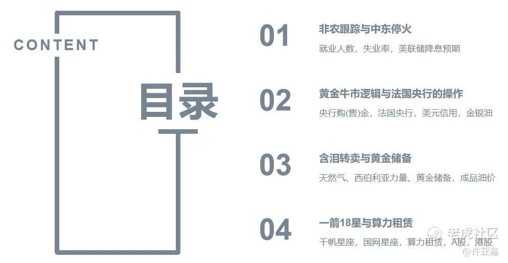 今晚是4月匠鑫学院第三节直播课,我分别从“非农跟踪与中东停火”,“黄金牛市逻辑与法国央行的操作”,“含泪转卖与黄金储备”,“一箭18星与算力租赁”四个方面解读了基本面的一些信息,并结合就业人数,失业率,美联储降息预期,央行购(售)金,法国央行,美元信用,金银油,天然气,西伯利亚力量,黄金储备,成品油价,千帆星座,国网星座,算力租赁,A股,港股等给出了接下来的布局思路。