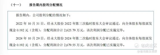 结合此前永大股份于2021年实施的现金分红1.5亿元。从2021-2024年,永大股份累计完成现金分红2.03亿元,主要流向实控人李氏家族。