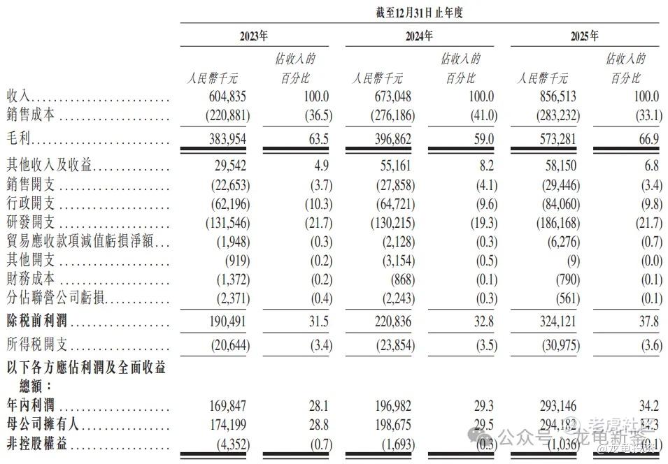 23年毛利3.84亿,24年毛利3.97亿,25年毛利5.73亿,毛利率66.9%;