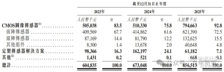 长光辰芯主要营收来源于CMOS图像传感器、定制传感器解决方案及其它,具体明细见下图。