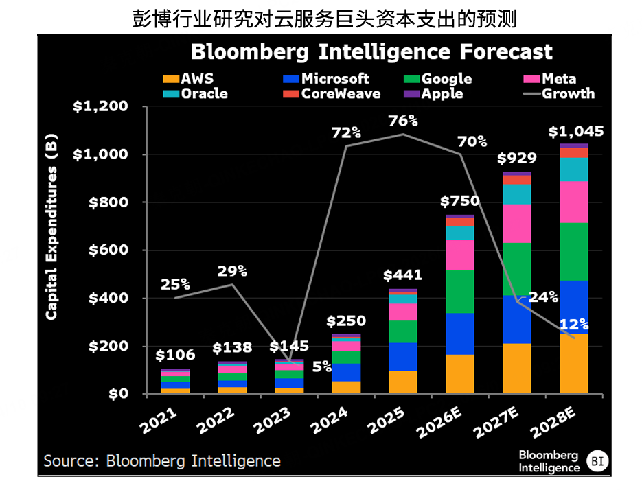 预计 $亚马逊(AMZN)$ $谷歌(GOOG)$ $微软(MSFT)$ $苹果(AAPL)$ $Meta Platforms, Inc.(META)$ $甲骨文(ORCL)$ 等科技巨头的资本开支今年将超过7500亿美元,同比增长70%!