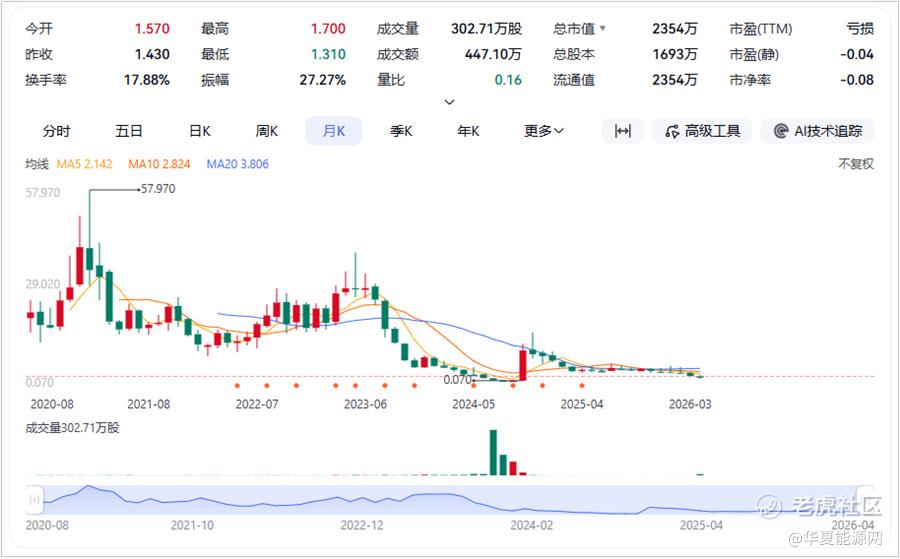 Maxeon股价走势图(截至美东时间4月8日,最新股价1.390美元,总市值2354万美元)