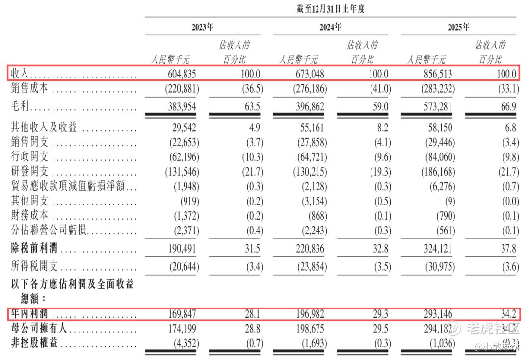 公司从2023~2025年的营收分别是6.05亿、6.73亿、8.57亿,2025年营收同比增长27.26%;2023~2025年的净利润分别是1.7亿、1.97亿、2.93亿,2025年的净利润同比增长48.82%。