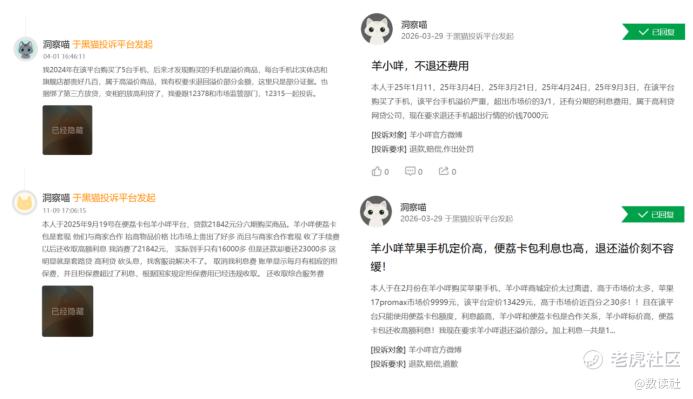 在黑猫投诉、消费保、啄木鸟投诉平台上,关于“羊小咩”的投诉量已达到24532条。大量消费者指控,高出的商品差价实则为变相的“砍头息”。