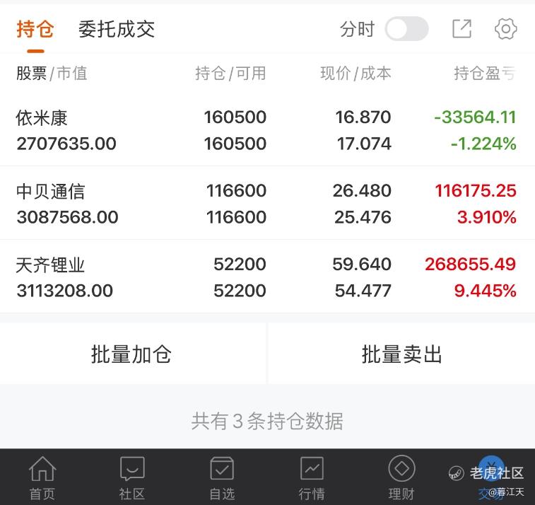 今天早盘高开高走比较强势,但盘中又开始高速轮动,技术面在遇到前期压力后,出现了较多回落,下周预期是盘整,但即使有调整,只要没出现大级别利空,市场应该会逐步恢复正常了,操作上要注意区间震荡的节奏,调整时寻找机会,遇压力时适当高抛,直到后续变盘,考虑到时间节点的问题,在近期寻找机会时,尽量选择财报已经披露的个$天齐锂业(002466)$ $中贝通信(603220)$ $依米康(300249)$