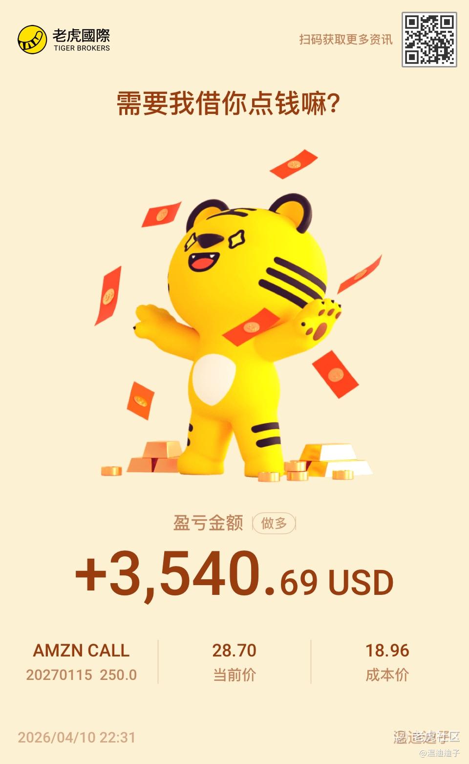 {"i18n":{"language":"zh_CN"},"data":{"magic":2,"id":552127815376952,"tweetId":"552127815376952","gmtCreate":1775831492510,"gmtModify":1775831504339,"author":{"id":3541722028105482,"idStr":"3541722028105482","authorId":3541722028105482,"authorIdStr":"3541722028105482","name":"温迪迪子","avatar":"https://static.tigerbbs.com/ae1c66e40195fbf2688035ceea988f07","vip":1,"userType":1,"introduction":"","boolIsFan":false,"boolIsHead":false,"crmLevel":4,"crmLevelSwitch":0,"currentWearingBadge":{"badgeId":"35ec162348d5460f88c959321e554969-2","templateUuid":"35ec162348d5460f88c959321e554969","name":"宗师交易员","description":"证券或期货账户累计交易次数达到100次","bigImgUrl":"https://static.tigerbbs.com/ad22cfbe2d05aa393b18e9226e4b0307","smallImgUrl":"https://static.tigerbbs.com/36702e6ff3ffe46acafee66cc85273ca","grayImgUrl":"https://static.tigerbbs.com/d52eb88fa385cf5abe2616ed63781765","redirectLinkEnabled":0,"hasAllocated":1,"isWearing":1,"stampPosition":0,"hasStamp":0,"allocationCount":1,"allocatedDate":"2025.06.25","exceedPercentage":"80.77%","individualDisplayEnabled":0},"individualDisplayBadges":[],"wearingBadges":[{"badgeId":"35ec162348d5460f88c959321e554969-2","name":"宗师交易员","description":"证券或期货账户累计交易次数达到100次","smallImgUrl":"https://static.tigerbbs.com/36702e6ff3ffe46acafee66cc85273ca","bigImgUrl":"https://static.tigerbbs.com/ad22cfbe2d05aa393b18e9226e4b0307","isScarce":0,"effectEnabled":0,"redirectLinkEnabled":0,"redirectLinkValidityFrom":0,"redirectLinkValidityTo":9223372036854776000}],"fanSize":3,"starInvestorFlag":false},"themes":[{"themeId":"5bfad02ab61749c8bfe6573ac7bbe8a3","categoryId":"b76d3c59fc044df59779c041b25852a6","name":"晒晒更赚钱","type":0,"rnLink":"https://laohu8.com/RN?name=RNTheme&page=/theme/detail&rndata={\"themeId\":5bfad02ab61749c8bfe6573ac7bbe8a3}&rnconfig={\"headerBarHidden\": true}","description":"晒晒你的盈亏单,秀秀虎友们的实力!","image":"https://static.tigerbbs.com/347184265ee0be8c363259951f8033cb"}],"images":[{"img":"https://static.tigerbbs.com/f65512433d24ddf41384ab43c89aede8","width":"960","height":"1563"}],"coverImages":[{"img":"https://static.tigerbbs.com/f65512433d24ddf41384ab43c89aede8","width":"960","height":"1563"}],"title":"","html":"<html><head></head><body><p><a href=\"https://laohu8.com/OPT/AMZN 20270115 250.0 CALL\">$AMZN 20270115 250.0 CALL$</a> </p><img src=\"https://static.tigerbbs.com/f65512433d24ddf41384ab43c89aede8\" tg-width=\"960\" tg-height=\"1563\"></body></html>","htmlText":"<html><head></head><body><p><a href=\"https://laohu8.com/OPT/AMZN 20270115 250.0 CALL\">$AMZN 20270115 250.0 CALL$</a> </p><img src=\"https://static.tigerbbs.com/f65512433d24ddf41384ab43c89aede8\" tg-width=\"960\" tg-height=\"1563\"></body></html>","text":"$AMZN 20270115 250.0 CALL$","highlighted":1,"essential":1,"paper":1,"likeSize":4,"commentSize":0,"repostSize":0,"favoriteSize":0,"link":"https://laohu8.com/post/552127815376952","repostId":0,"isVote":1,"tweetType":1,"viewCount":704,"commentLimit":10,"likeStatus":false,"favoriteStatus":false,"reportStatus":false,"symbols":["AMZN","AMZN 20270115 250.0 CALL"],"verified":2,"subType":0,"readableState":1,"langContent":"EN","currentLanguage":"EN","warmUpFlag":false,"orderFlag":false,"shareable":true,"causeOfNotShareable":"","featuresForAnalytics":["晒单贴"],"commentAndTweetFlag":false,"andRepostAutoSelectedFlag":false,"upFlag":false,"length":23,"optionInvolvedFlag":true,"xxTargetLangEnum":"ORIG"},"commentList":[],"hasMoreComment":false,"orderType":2}