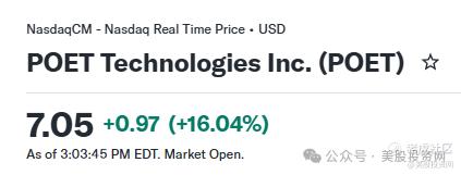 $POET Technologies Inc(POET)$ :暴涨 16%+。凭借独特的光引擎集成技术,POET 走的是“降低功耗、提升效率”的路线,因此也被资金视为解决 AI 数据中心“电力焦虑”的潜在黑马。