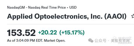 $Applied Optoelectronics Inc.(AAOI)$ :狂飙 15%+。拥有行业领先的 1.6T LPO 量产进度,是资金押注 AI 数据中心设备迭代速度的最强弹性标的。