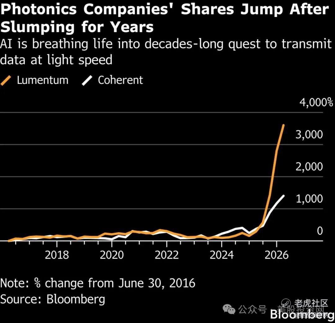 (自2016年6月30日以来,LITE涨约3200%,COHR涨约1100%)