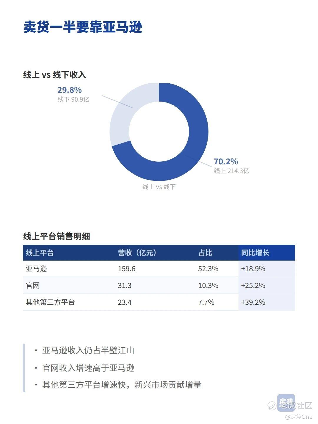 线上收入占比70.2%,仅亚马逊平台贡献了159.6亿元,占总营收52.3%。值得一提的是,官网收入31.3亿元,同比增长25.2%。安克正试图绕过平台抽成,建立直达用户的私域阵地。