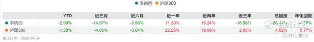其中,2025年4月11日,他开始管理信澳优势价值混合,最初与是星涛共管,7月是星涛离职后独自管理。截至2026年4月9日,该基金任期总回报为11.63%,跑输业绩比较基准9.33个百分点;2025年8月1日,李晓西接管的信澳价值精选混合,任职回报率为5.99%,仍未能扭转该产品自成立以来的亏损局面。两只基金合计管理规模仅7.96亿元,与他在华泰柏瑞期间曾执掌的百亿级体量相比,相去甚远。