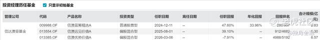2024年10月,何静加入信达澳亚基金,同年12月正式出任基金经理,目前已管理3只基金,其代表作信澳蓝筹精选股票,自2024年12月11日起管理至今,任职期间回报率达到47.01%,展现出较强的主动管理能力,这也为其单独接管信澳优势价值混合奠定了基础。另一只自2025年8月起管理的信澳远见价值混合,任职回报39.1%,但3月6日起开始管理的信澳优势价值混合任职回报为负,为-7.9%。