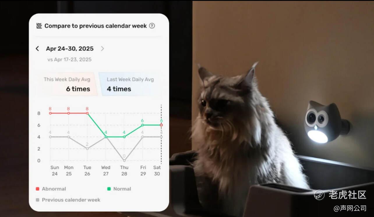 在刚刚落幕的 AWE 2026上,声网展台前的一款小设备引起了不少人注意——形似猫头鹰的“猫所长”(Litter Lens)。它可以后装在普通猫砂盆上,通过 AI 视觉分析猫咪的如厕行为,将猫砂盆变成家庭宠物健康的“第一哨所”。这款产品来自深圳灵予科技(旗下品牌悉宠),一家专注于 AI 视觉宠物健康监测的公司,其产品已在北美市场获得良好反馈。今年1月,悉宠“猫所长”已正式登陆中国市场。