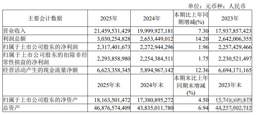 2026年4月11日,“廉价航空之王”春秋航空披露2025年业绩报告,营业收入214.6亿元,同比增长7.30%,比2024年的增速继续缩窄;归母净利润23.17亿元,同比增长1.96%。