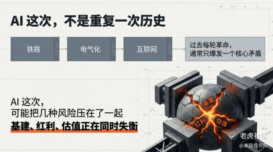 所以,AI 这次真正让人不安的地方,不只是它更热,而是它把过去几轮技术革命里最危险的几面,几乎同时摆到了我们面前:基建先热,红利后到,市场先炒,而且风险还更早外溢。