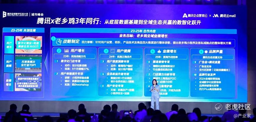在这次大会现场,除了破圈的MAGIC Agent2.0之外,另一个企业也更被外界关注,它就是“老乡鸡”。关于它的一个成绩是:在和腾讯签订战略合作后,这家中式快餐巨头交出一张惊艳行业的成绩单:老乡鸡精准触达从最初的不到300万/月,增长到了接近3000万/月,实现了10倍的跃升。