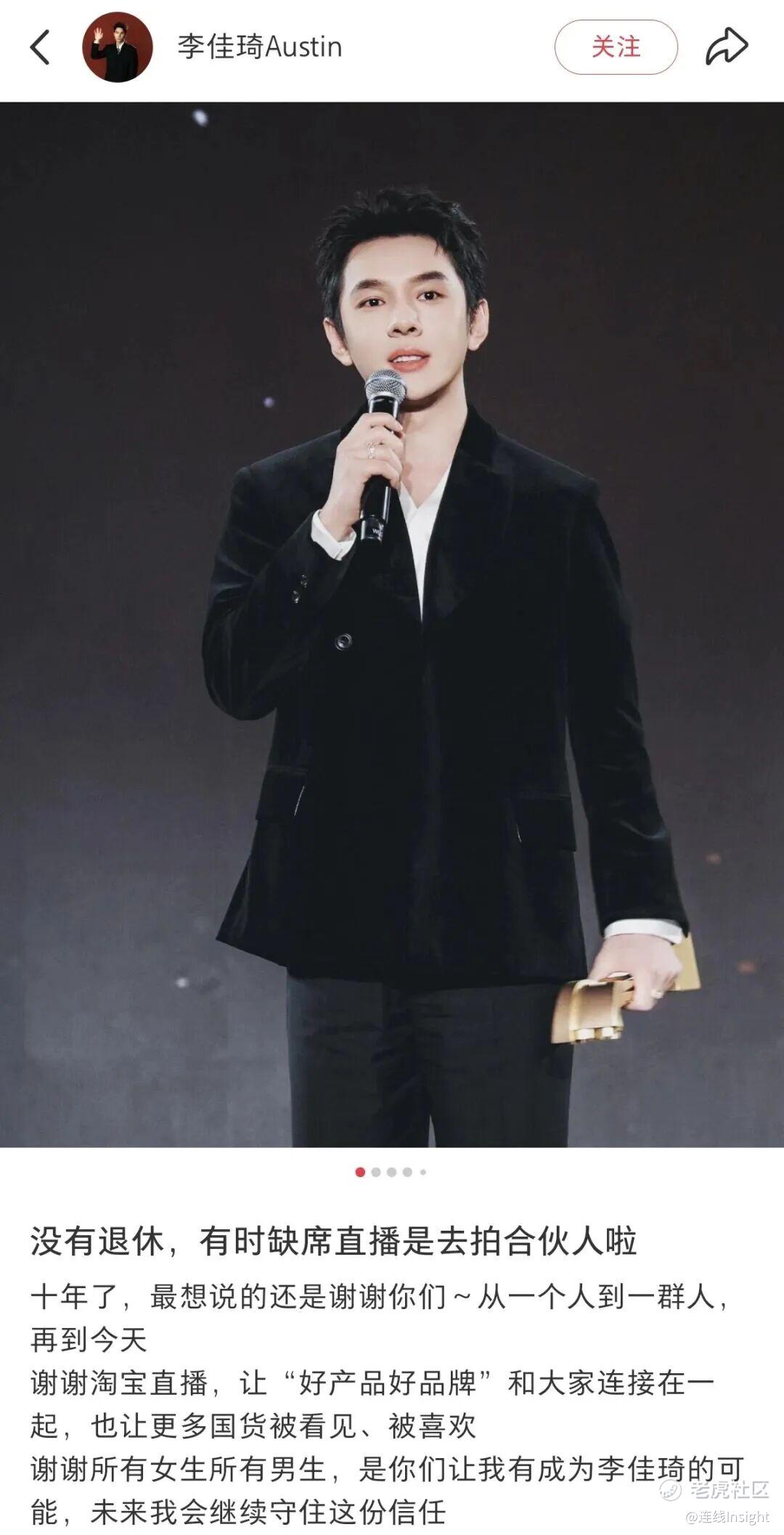 4月8日,淘宝直播十周年盛典的舞台上,李佳琦握着话筒,眼眶泛红,声音几度哽咽。他说出了一句足以在直播电商行业激起涟漪的话:“今年我有底气,在直播间缺席两个季度的直播。”