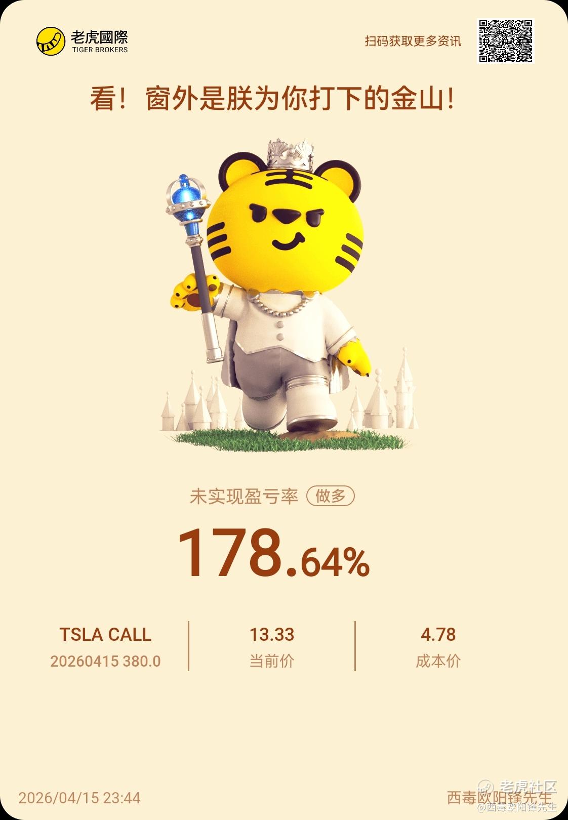 $TSLA 20260415 380.0 CALL$ 太牛了$特斯拉(TSLA)$ $甲骨文(ORCL)$ $英伟达(NVDA)$ $纳斯达克100指数(NDX)$