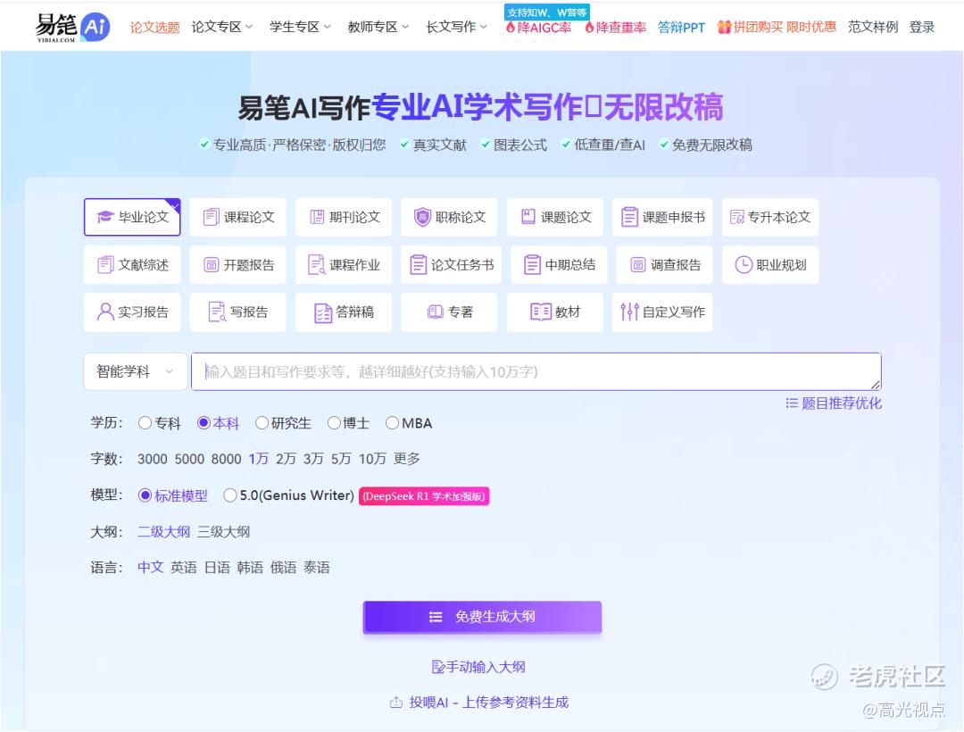 现在的AI写论文软件实在太割韭菜了!想写篇高质量论文,生成个大纲,都要包月付费,填充正文得按点数买,后期为了过查重还得额外掏降重钱。有些学术插件一个月订阅费就要上百元,七七八八算下来,论文还没定稿,钱包空了一半...好在找了一圈,终于发现了一个完全可以替代这些昂贵工具、高质量论文AI生成的神仙网站:易笔AI。
