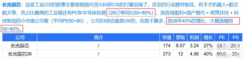 长光这家就是中科院长春光机所、奥普光电、凌云光设立的高端CIS中国企业,做各种技术苛刻的航空航天需求,而最大占比的工业里半导体设备订单新增强劲,而且设备卖铲人算这三四个季度最吃香的行业了,商业前沿两不误,我只按26年40%增长算涨幅范围50~60%,长光的开盘50%收盘72%也算符合预期!