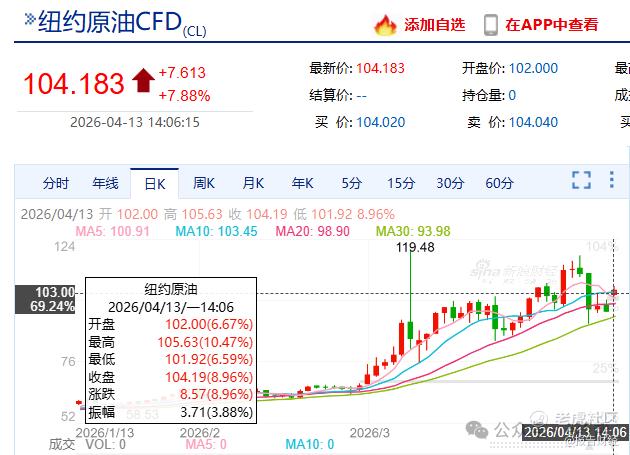4月13日早间,国际油价强势拉升,正式突破关键心理关口——100美元/桶: