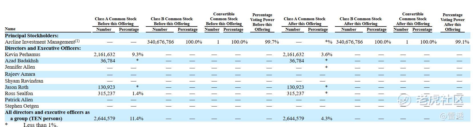 IPO前,Arcline Investment Management持有99.7%的投票权;IPO后,仍持有99.1%的投票权。