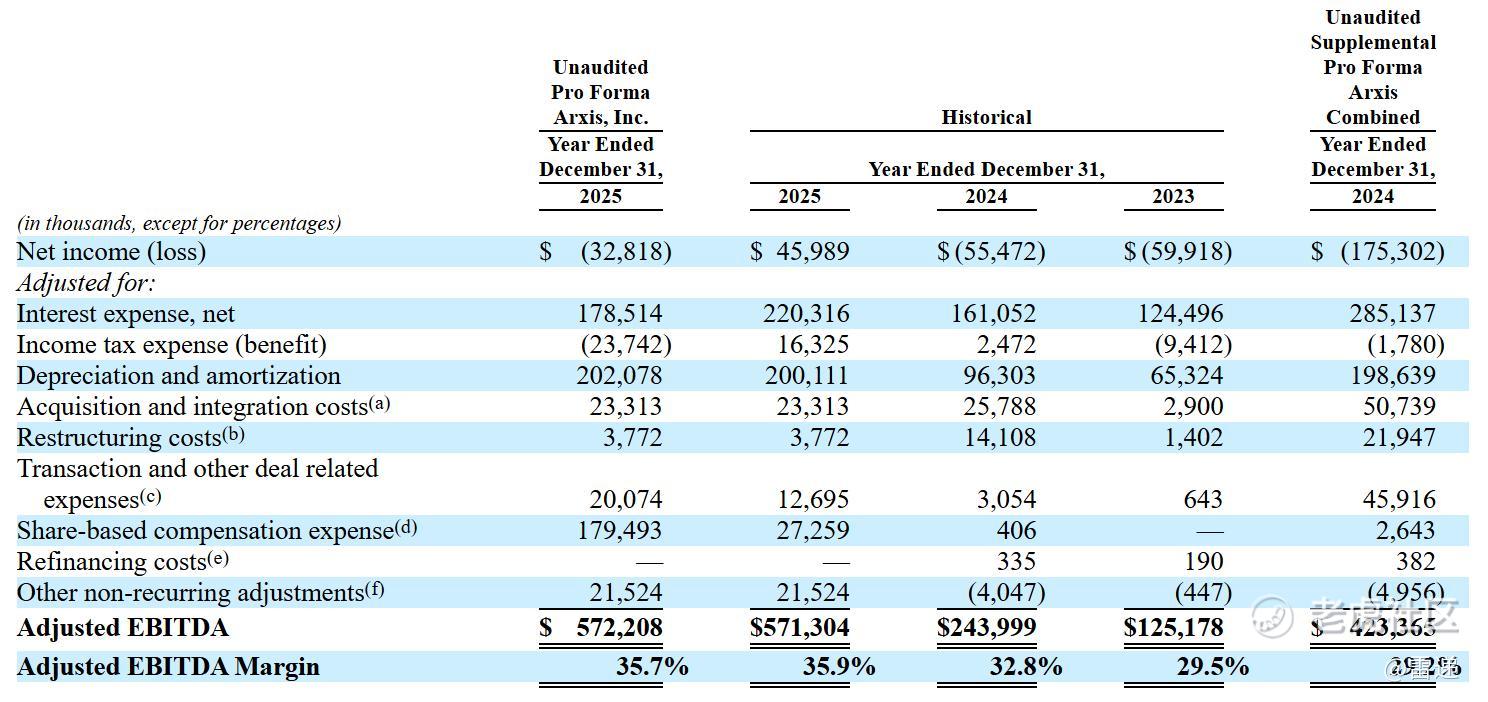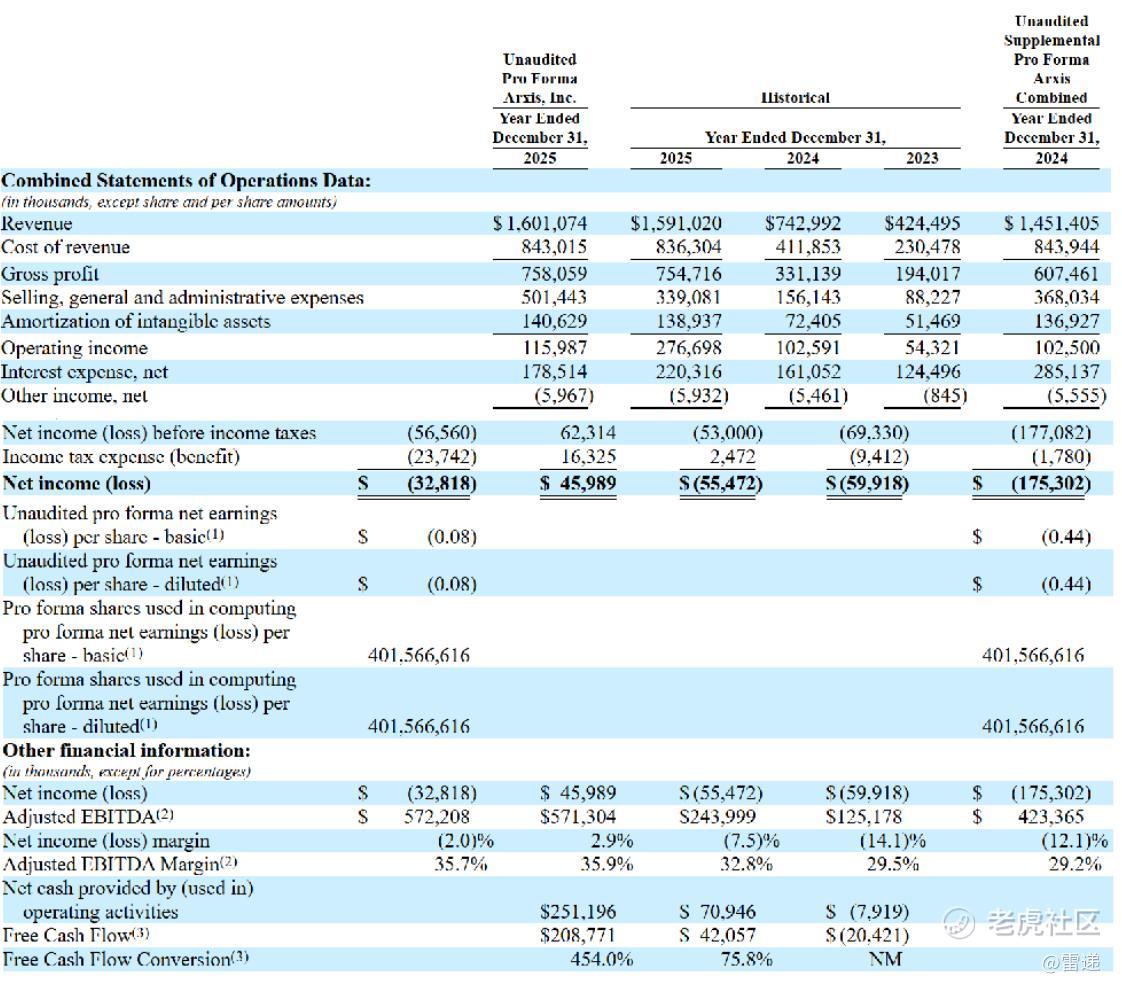 Arxis在2023年、2024年、2025年收入分别为4.24亿美元、7.43亿美元、16亿美元;毛利分别为1.94亿美元、3.31亿美元、7.55亿美元。