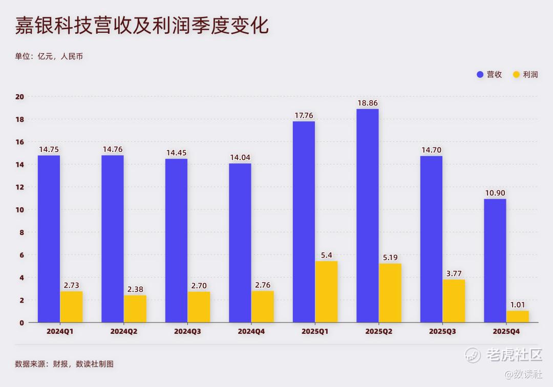 但分季度来看,2025年嘉银科技的业绩走势并非稳步向上,而是呈现出一条先高后低、断崖式下跌的曲线。