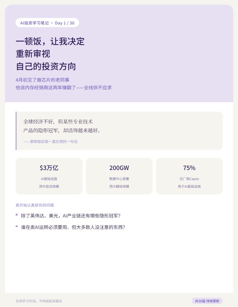 我决定重新捡起20年前在通信行业学到的深入拆解产业链的方法,认真研究AI产业链,这个当前周期最大确定性行业: