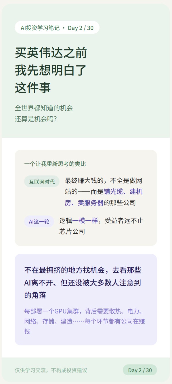 不是在最拥挤的地方找机会,而是去看那些AI离不开、但还没被大多数人注意到的角落。