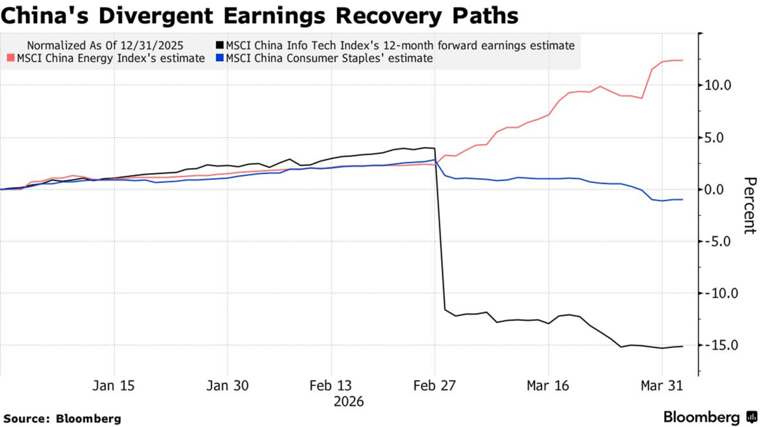 13、中国企业盈利复苏路径呈现显著的行业分化:信息技术和消费必需品等板块的盈利预期被下调,其中科技行业因持续的人工智能投资和电子商务领域的价格战而面临利润压力。相较之下,能源、原材料等对内需敏感度较低的行业盈利则超出预期,主要驱动因素是全球大宗商品价格上涨帮助稳定了上游产业的利润率,同时生产者价格指数(PPI)也结束了连续三年的通缩,转为正增长。