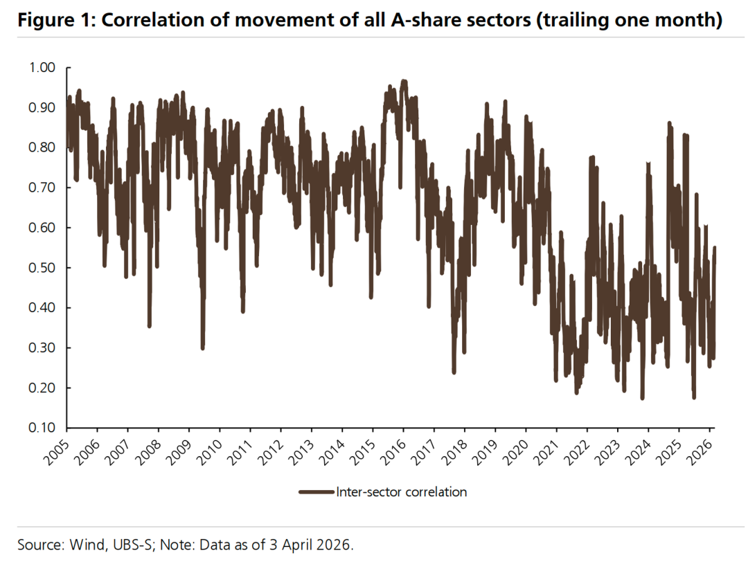 12、A股市场中所有行业板块走势的联动性,是判断市场驱动力的关键指标。当该指标高于0.5时,意味着宏观或非企业基本面因素对股价回报的贡献度增大,此时发掘行业主题与衡量市场风格的重要性甚至超过评估个股趋势。反之,一旦板块间联动性降至0.5以下,则表明市场分化加剧,投资机会会更多出现在微观或特定行业层面,为自下而上的选股策略提供了基础。