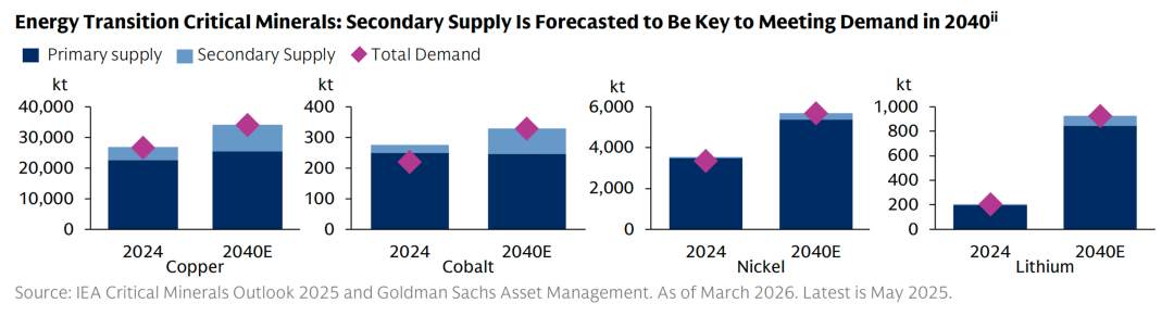 1、根据2040年需求预测,仅靠初级开采无法满足能源转型对铜、钴、镍和锂等关键矿物的需求,将出现显著的供应缺口。例如,锂的需求预计增长近五倍,而现有开采能力远不能及。为弥合这一差距,来自回收的二次供应将成为必不可少的补充,其在供应链中的战略地位日益凸显。这使得资源循环利用从单纯的环保议题上升为保障产业安全和供应链韧性的经济和战略要务。