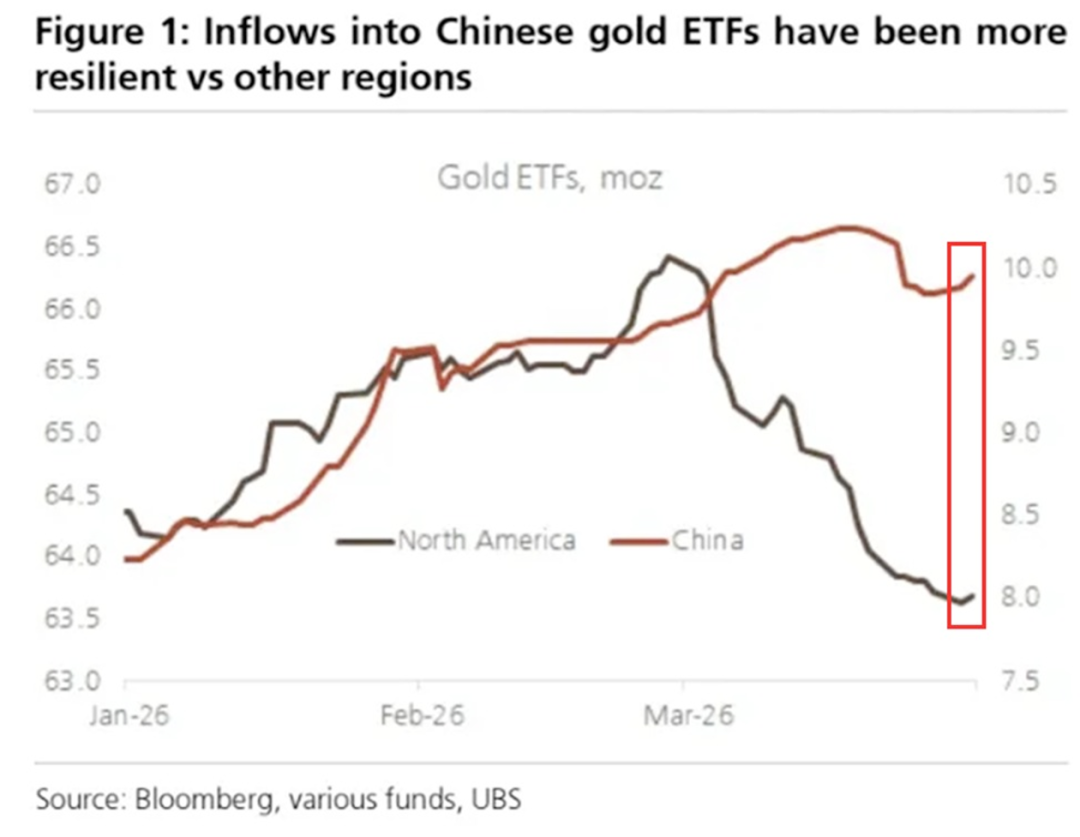 4、2026年3月,北美地区黄金ETF出现200万盎司净流出,完全抹去了年初以来的增幅。与此同时,中国的黄金ETF则吸引了50万盎司净流入,总持有量回升至约1000万盎司,接近年内高位。自2026年初以来,中国黄金ETF的总持有量已累计净增长近200万盎司。